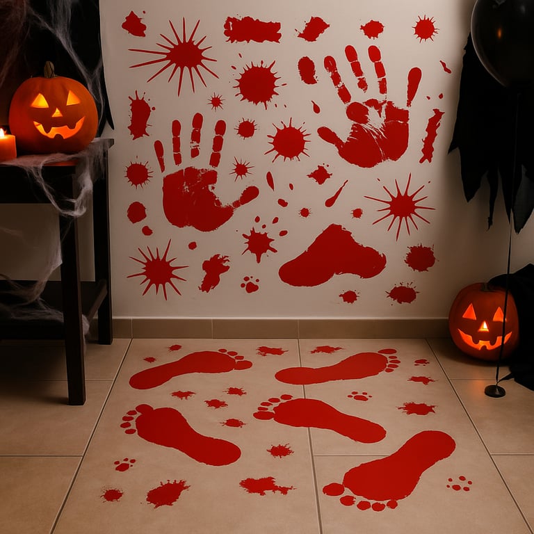 Sugestões de uso PARA COLAR NO CHÃO, NA PAREDE, ILUSTRANDO SANGUE EM CENÁRIOS DE HALLOWEEN