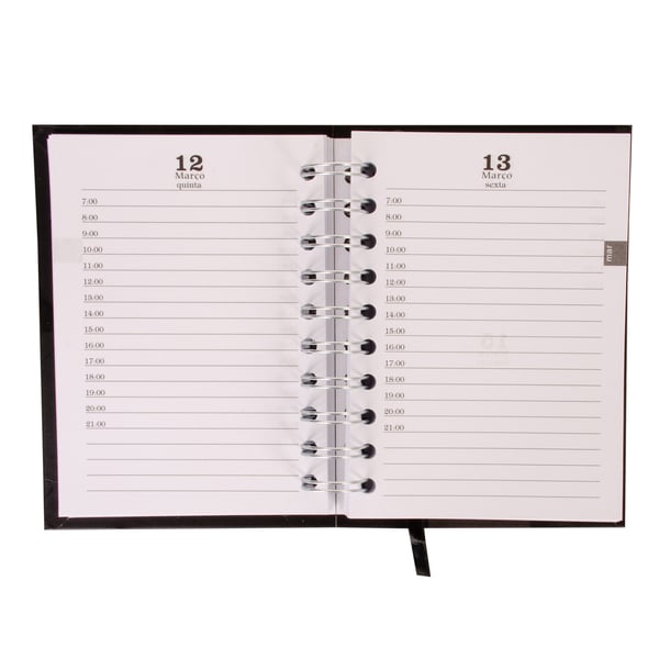ESPAÇO PARA DADOS PESSOAIS, FERIADOS NACIONAIS, FOLHAS COM DIAS DO ANOS, MÊS, SEMANA E HORÁRIO