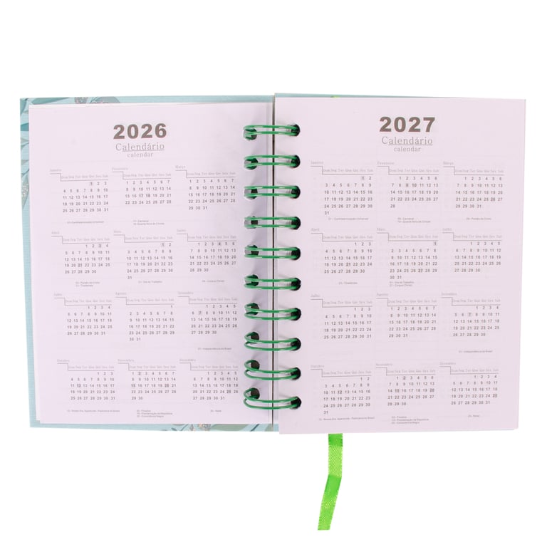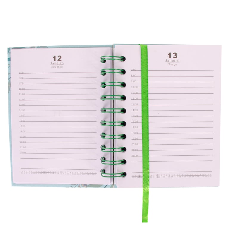 ESPAÇO PARA DADOS PESSOAIS, PLANEJAMENTO MENSAL, FOLHAS COM DIAS DO ANO, MÊS, SEMANA E HORÁRIO