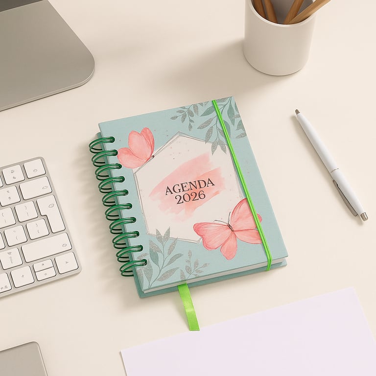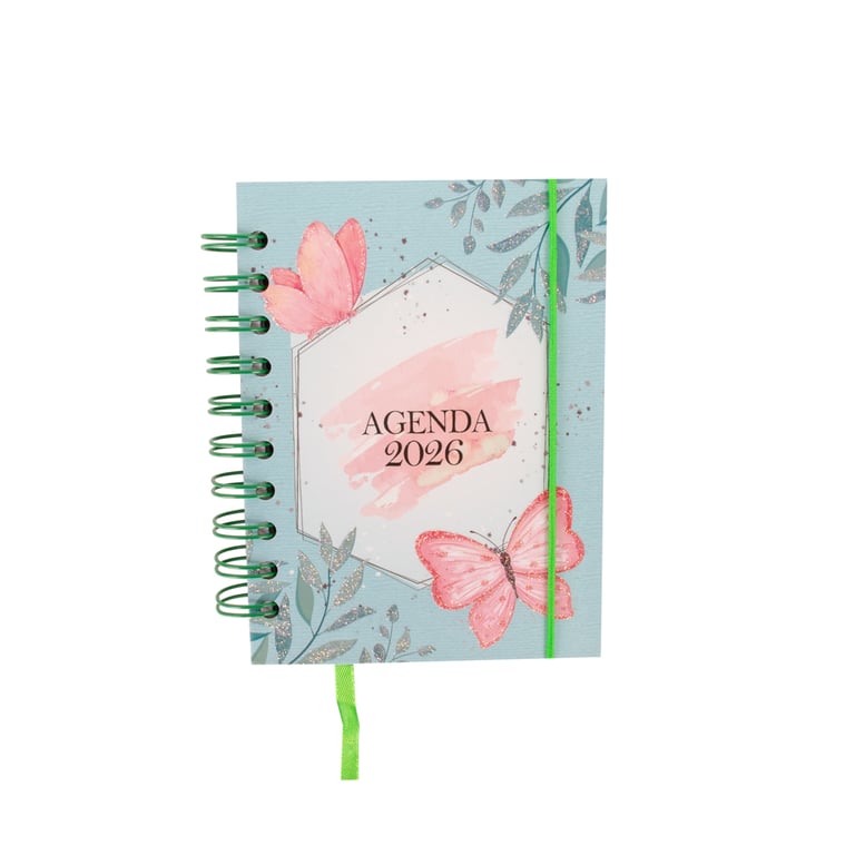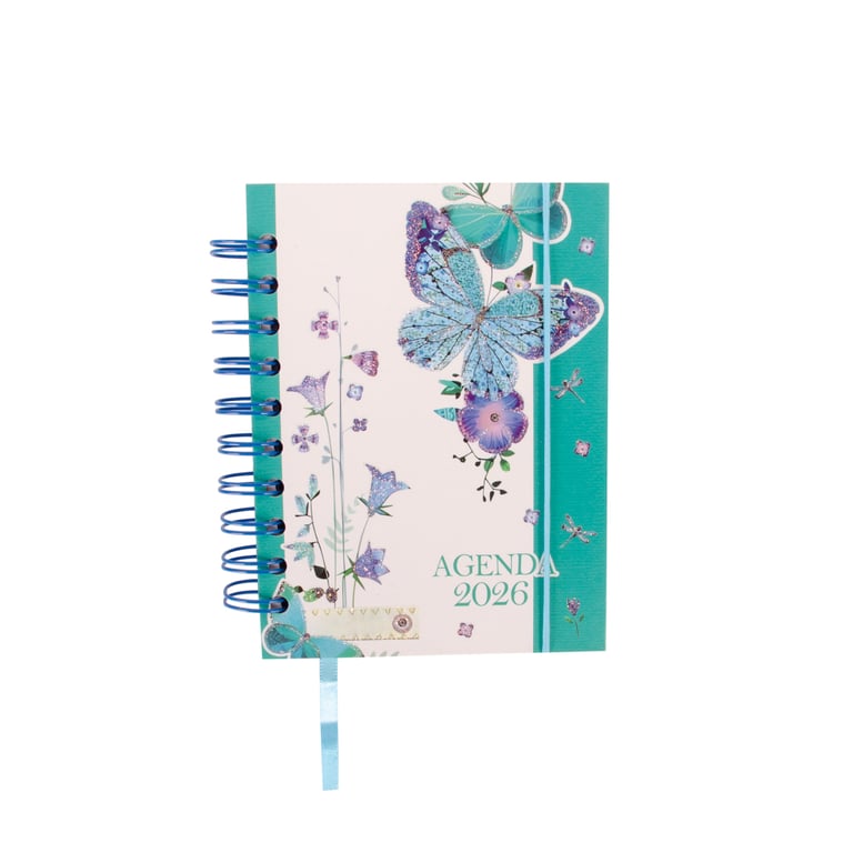 AGENDA 2026 15X12X2 CM 168 FOLHAS BORBOLETAS GLITTER CAPA DURA
