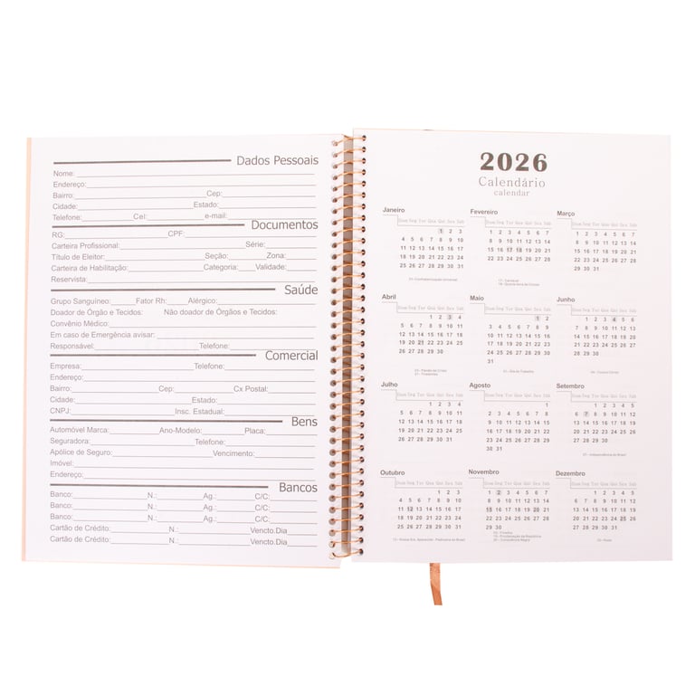 AGENDA / PLANNER 2026 24X19X1 CM 80 FOLHAS ESPIRAL ROSE GOLD CAPA DURA