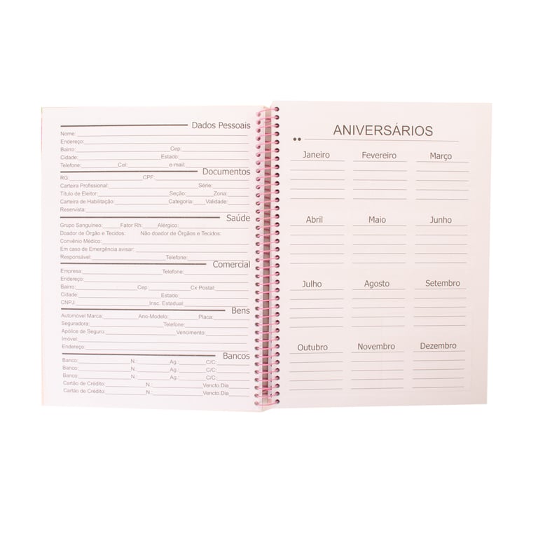 AGENDA / PLANNER 24X19X1,5 CM 96 FOLHAS ROSA CAPA DURA