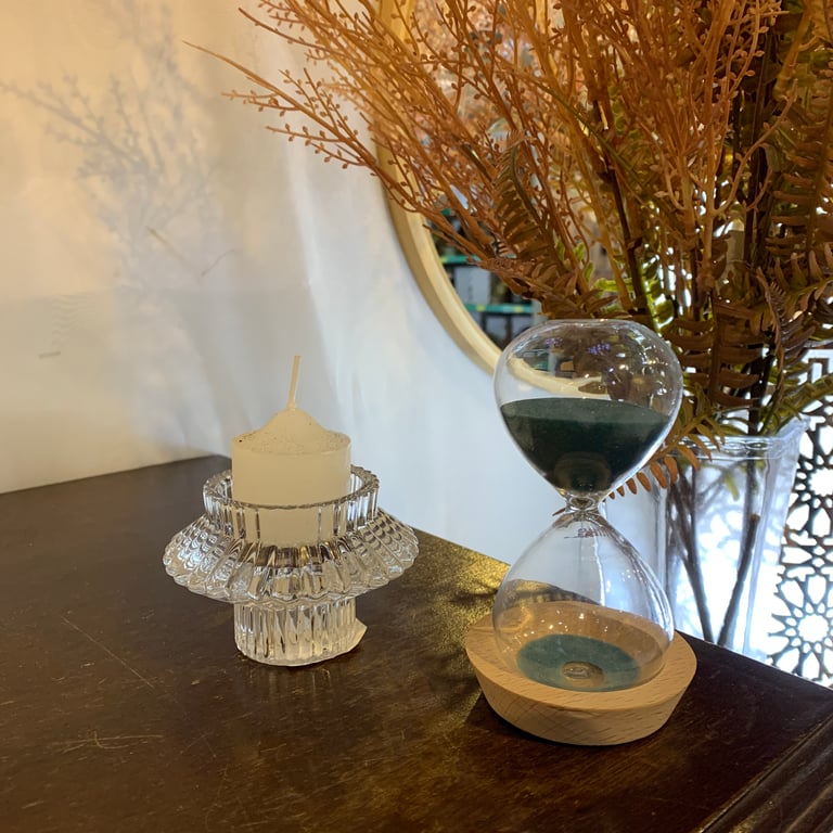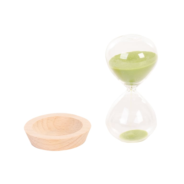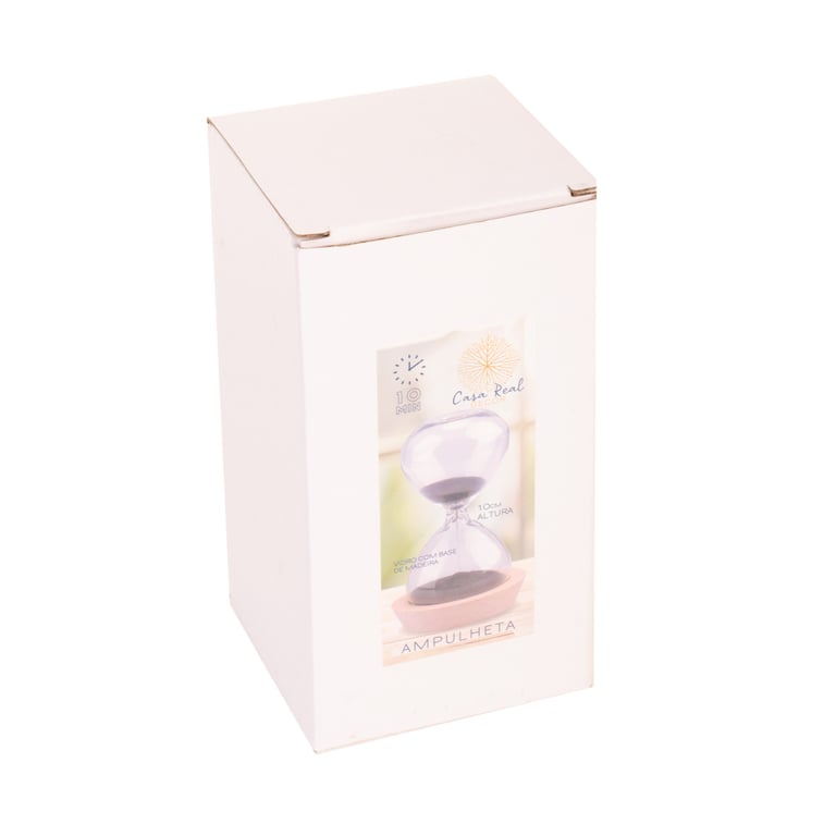 AMPULHETA VIDRO 10X5 CM BASE MADEIRA
