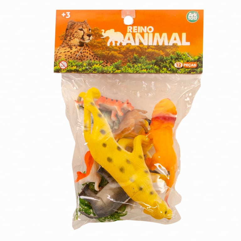 ANIMAIS 28X17 CM REINO ANIMAL 12 PEÇAS PLÁSTICO