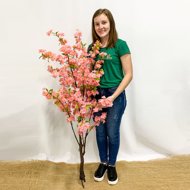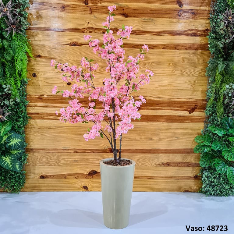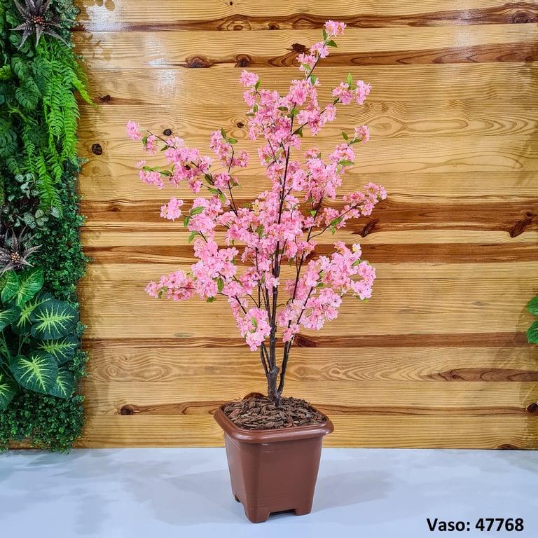 ÁRVORE CEREJEIRA 1,40 M ROSA CAULE MARROM COM VASO