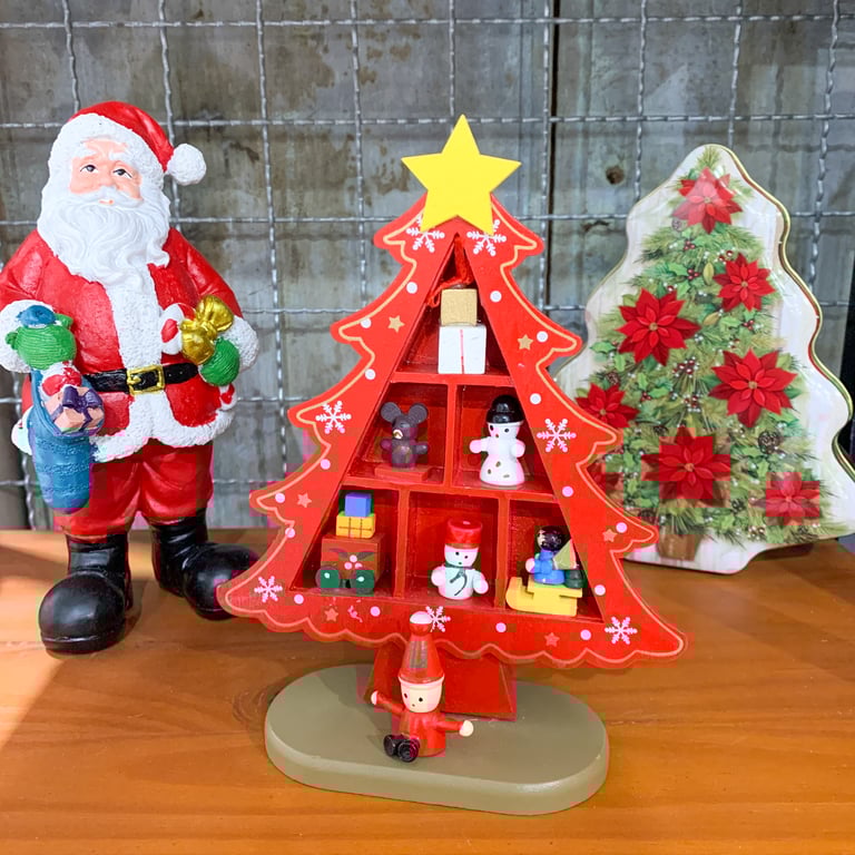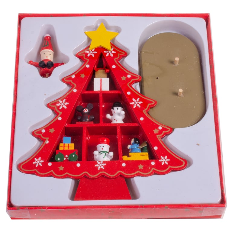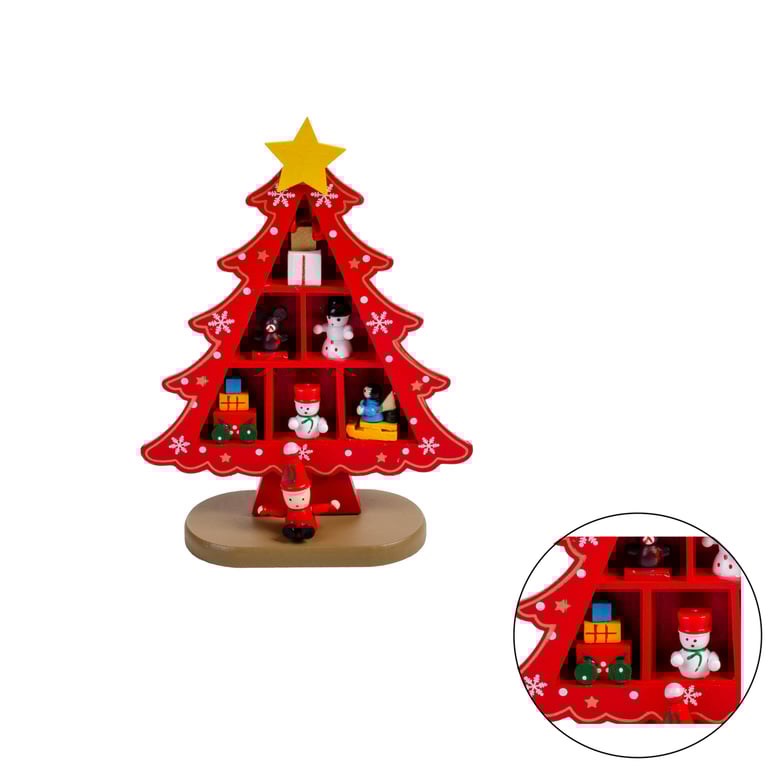 ÁRVORE NATAL MADEIRA 18X14 CM COM ENFEITES ESTANTE