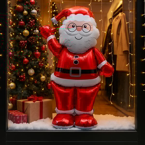 BALÃO METALIZADO 1,55 MX90 CM PAPAI NOEL ACENANDO