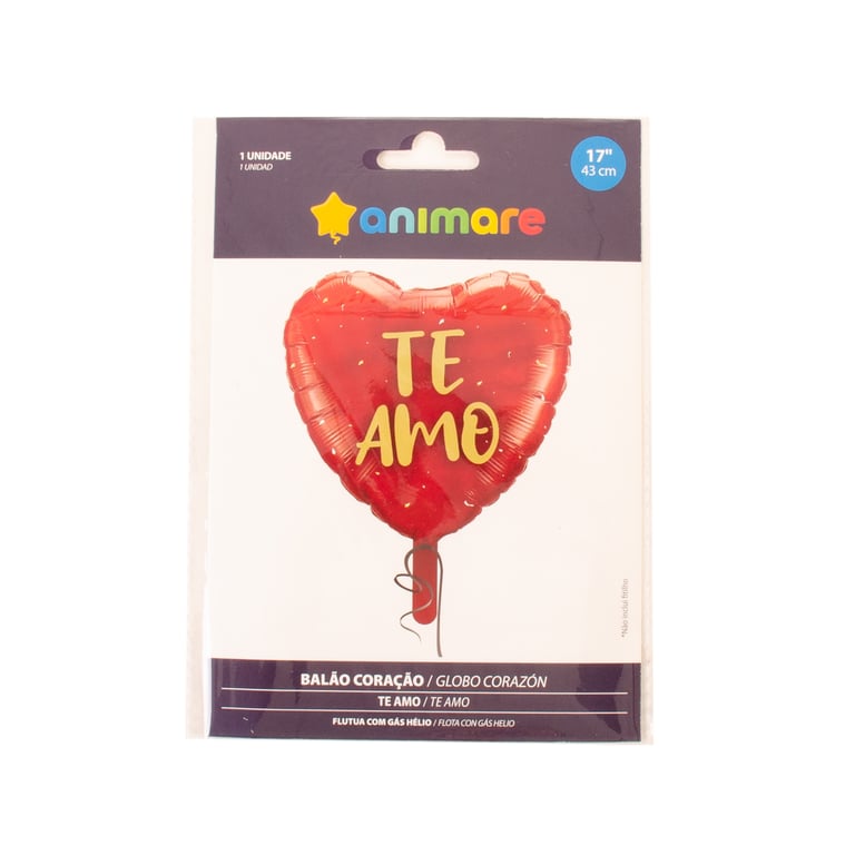BALÃO METALIZADO 43 CM CORAÇÃO TE AMO VERMELHO