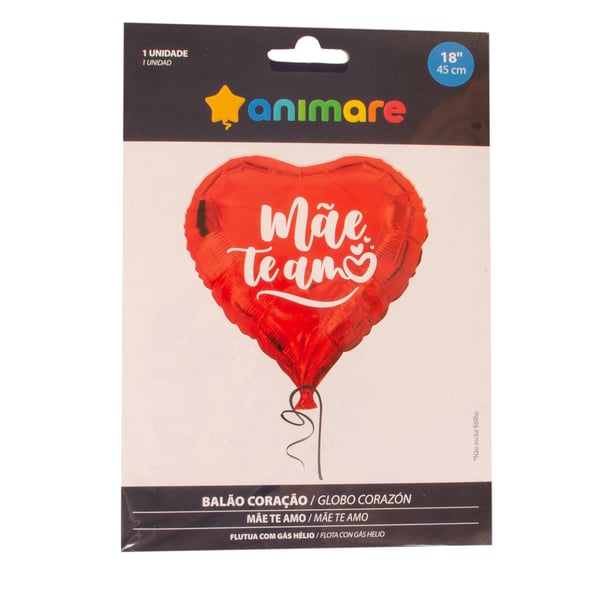 BALÃO METALIZADO 45 CM CORAÇÃO MÃE TE AMO