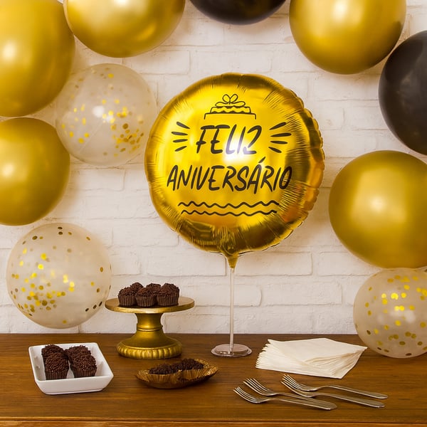 BALÃO METALIZADO 45 CM FELIZ ANIVERSÁRIO