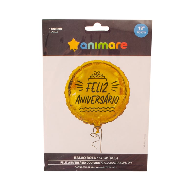 BALÃO METALIZADO 45 CM FELIZ ANIVERSÁRIO