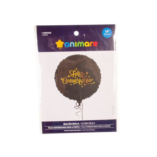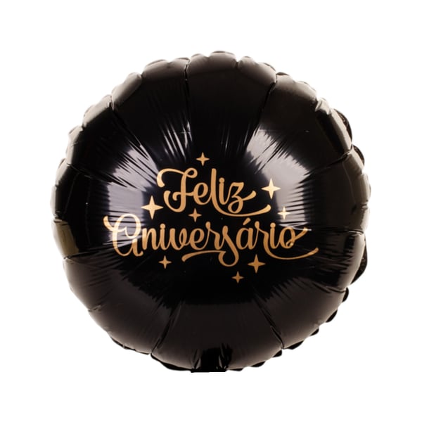 BALÃO METALIZADO 45 CM FELIZ ANIVERSÁRIO PRETO