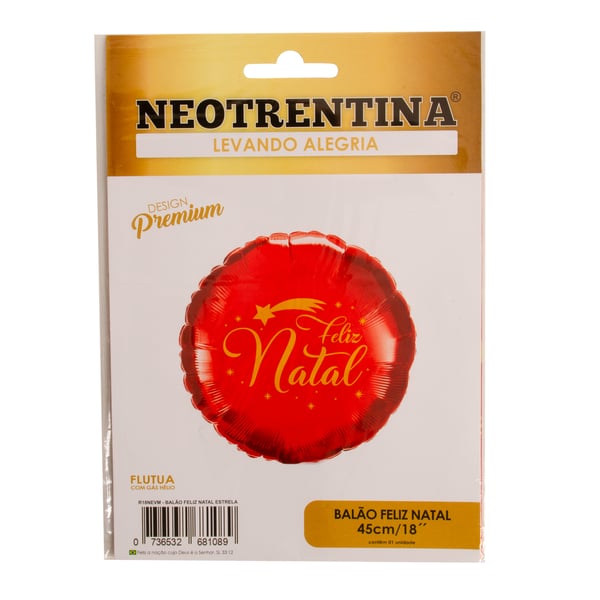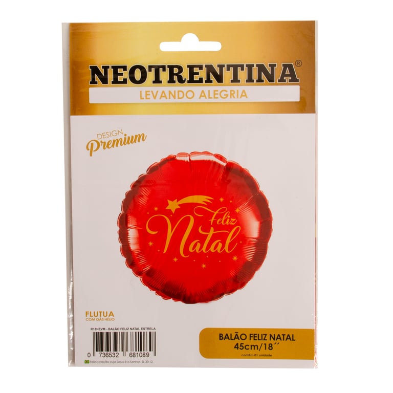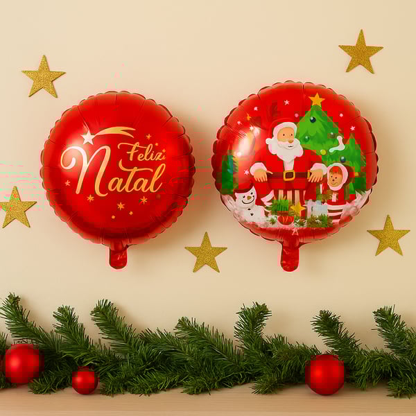 BALÃO METALIZADO 45 CM FELIZ NATAL VERMELHO