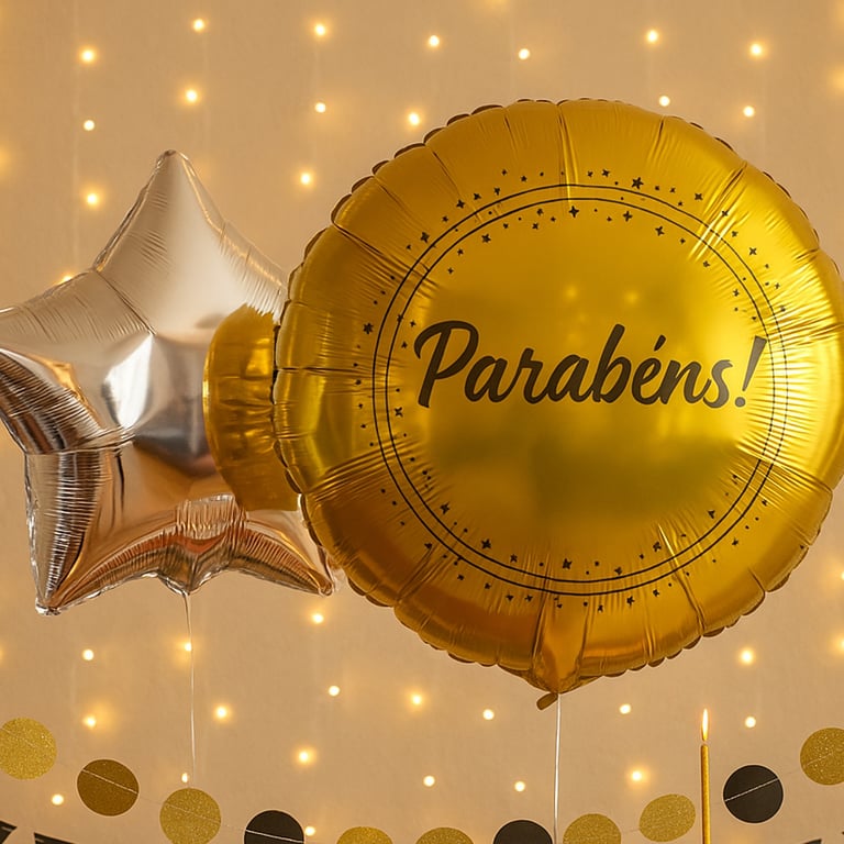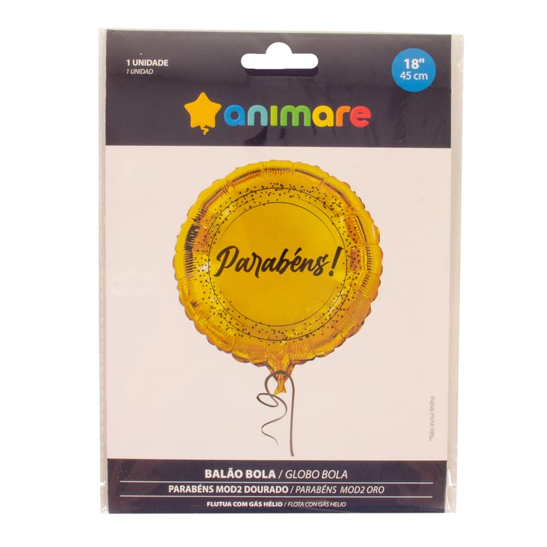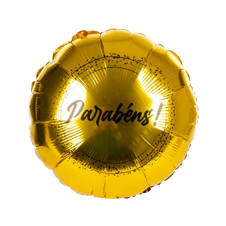 BALÃO METALIZADO 45 CM PARABÉNS DOURADO REDONDO