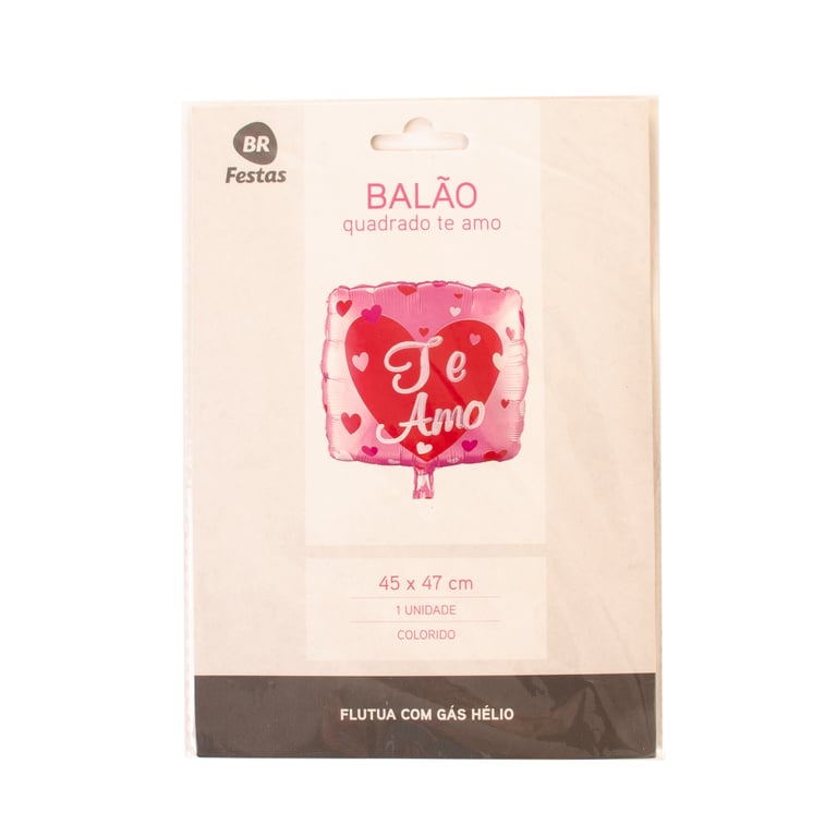 BALÃO METALIZADO 45X47 CM TE AMO QUADRADO ROSA