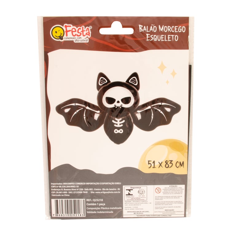 BALÃO METALIZADO 51X83 CM MORCEGO ESQUELETO HALLOWEEN