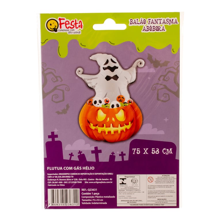 BALÃO METALIZADO 75X53 CM FANTASMA E ABÓBORA HALLOWEEN