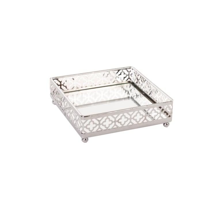 BANDEJA METAL 3,5X12X12 CM COM ESPELHO QUADRADA