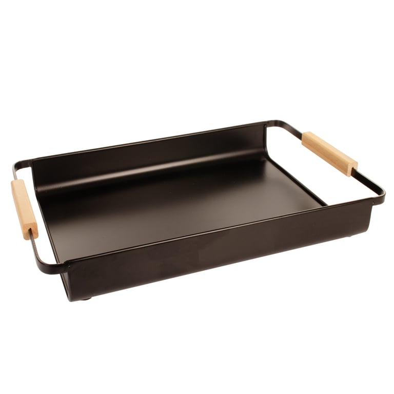 BANDEJA METAL 6,5X41X26,5 CM ALÇAS MADEIRA