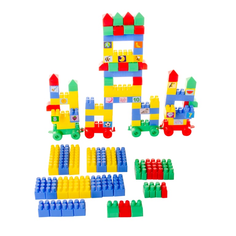 BLOCOS PARA MONTAR 128 PEÇAS COM 55 ADESIVOS