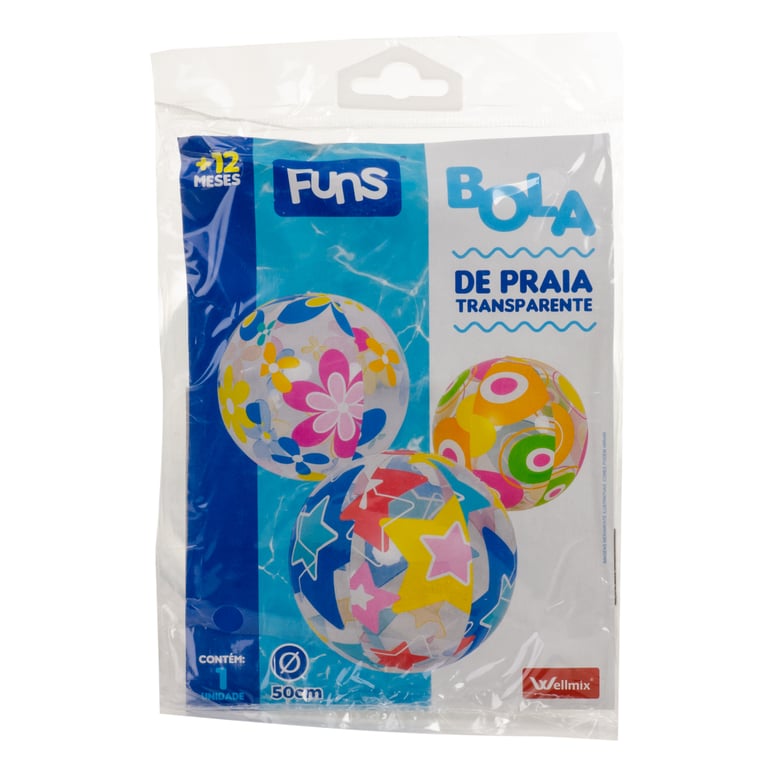 BOLA INFLÁVEL PLÁSTICA 50 CM TRANSPARENTE DECORADA