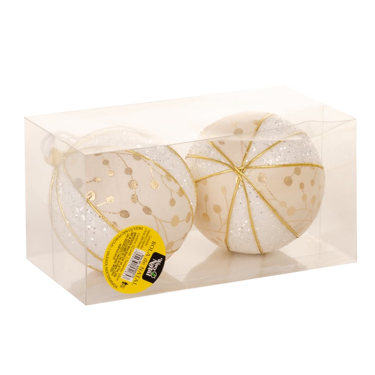 BOLA NATAL Nº 10 BEGE / BRANCA COM LINHAS DOURADAS 2 PEÇAS NA CAIXA