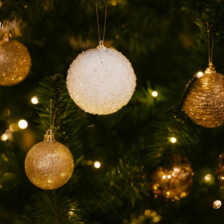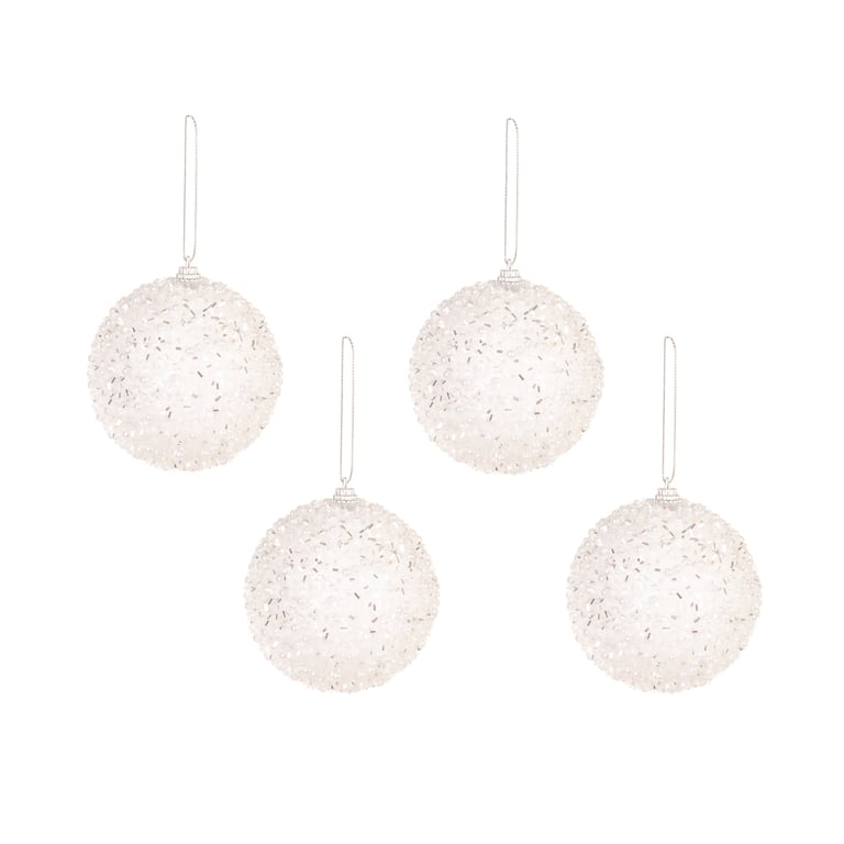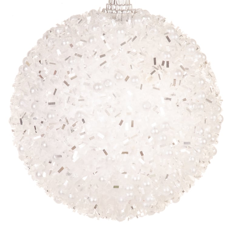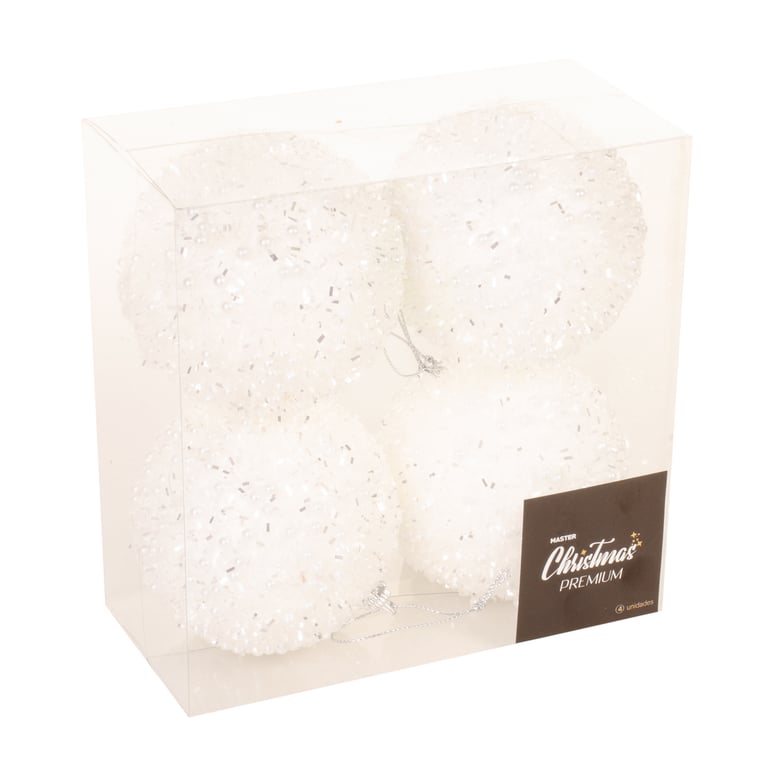 BOLA NATAL Nº 8 BRANCA COM PÉROLAS 4 PEÇAS NA CAIXA