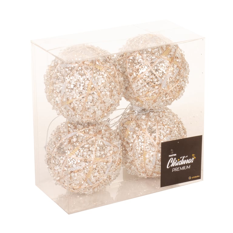 BOLA NATAL Nº 8 PÉROLAS E LINHAS 4 PEÇAS NA CAIXA