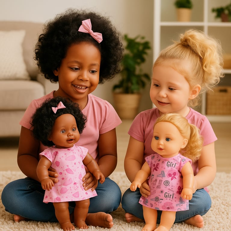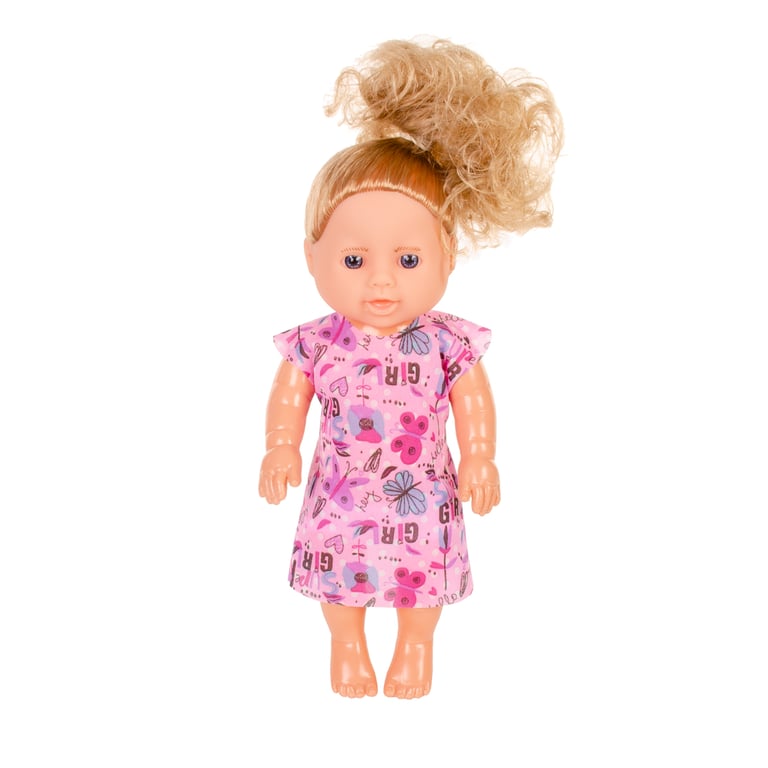 Composição CABEÇA EM VINIL, CORPO E CABELO EM POLIPROPILENO, ROUPA EM TECIDO