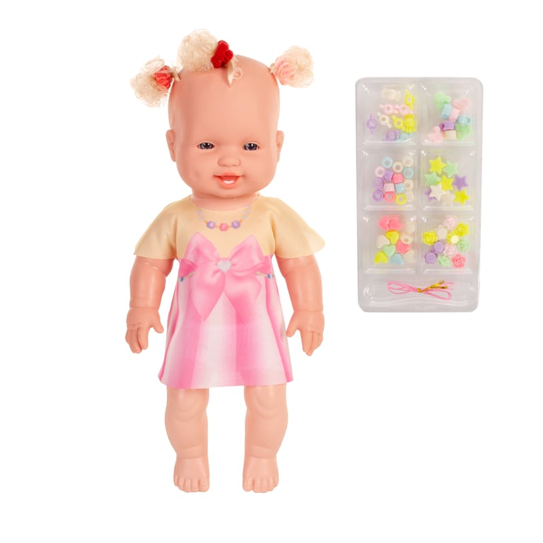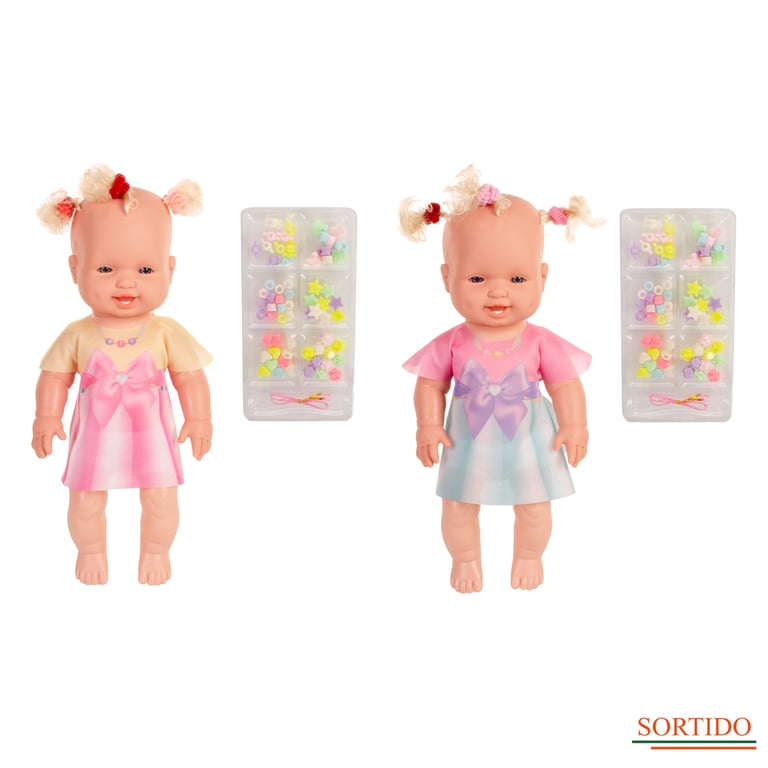 ACOMPANHA CARTELA COM MIÇANGAS PARA FAZER PULSEIRAS E COLARES PARA A CRIANÇA E PARA A BONECA.