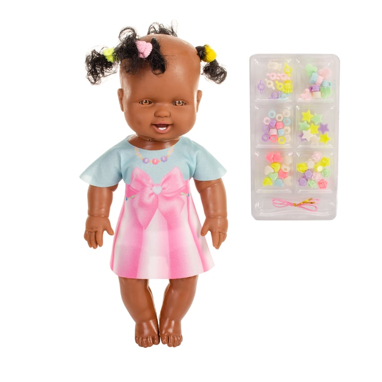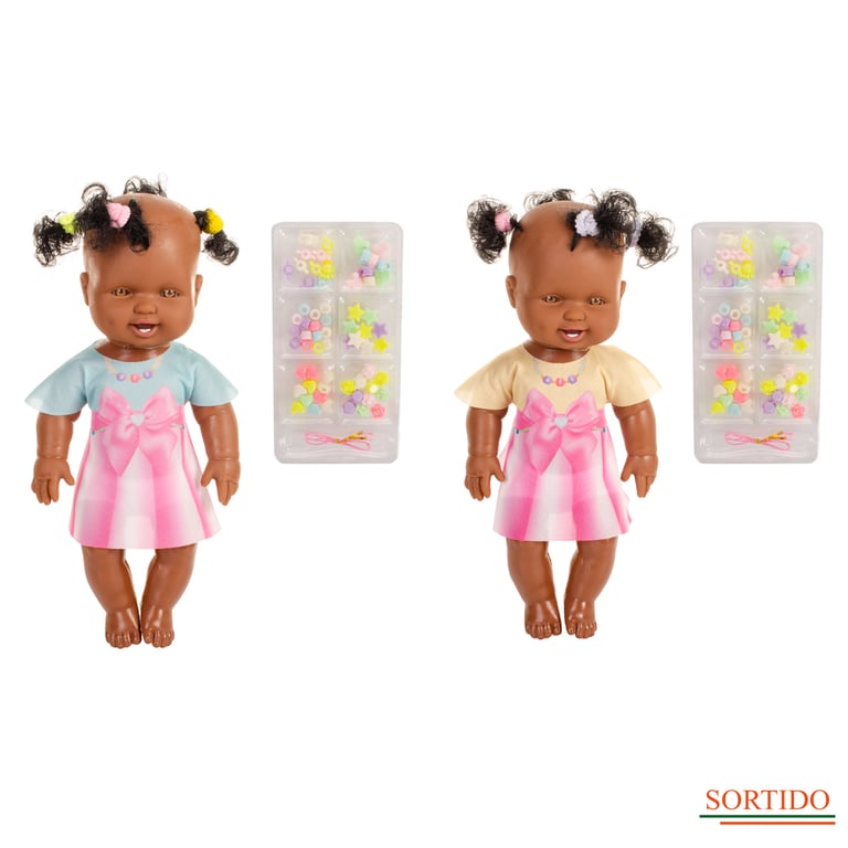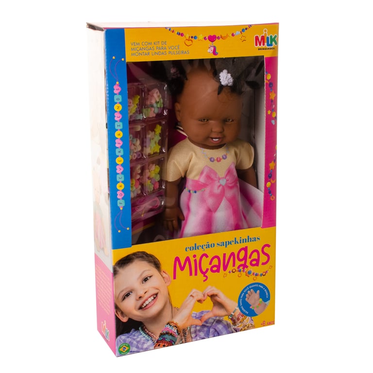 ACOMPANHA CARTELA COM MIÇANGAS PARA FAZER PULSEIRAS E COLARES PARA A CRIANÇA E PARA A BONECA.