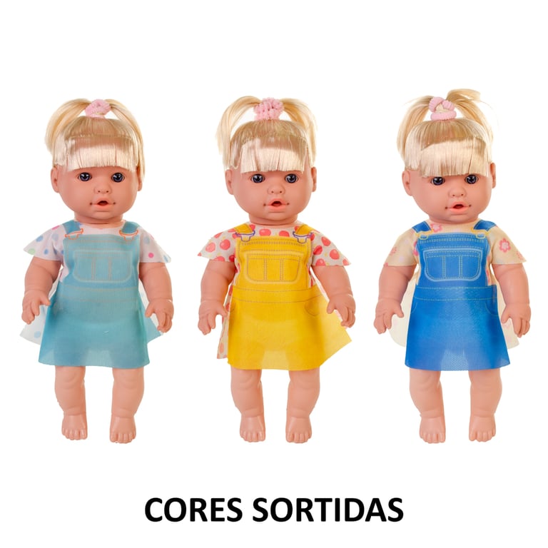 Composição VINIL, PLÁSTICO, TECIDO E CABELO EM POLIPROPILENO.