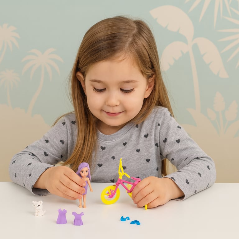 Observações CONTÉM:1 BONECA, 1 BICILCETA, 1 PET QUE PODE SER COLOCADO EM CIMA DO LÁPIS, ROUPAS E ACESSÓRIOS.