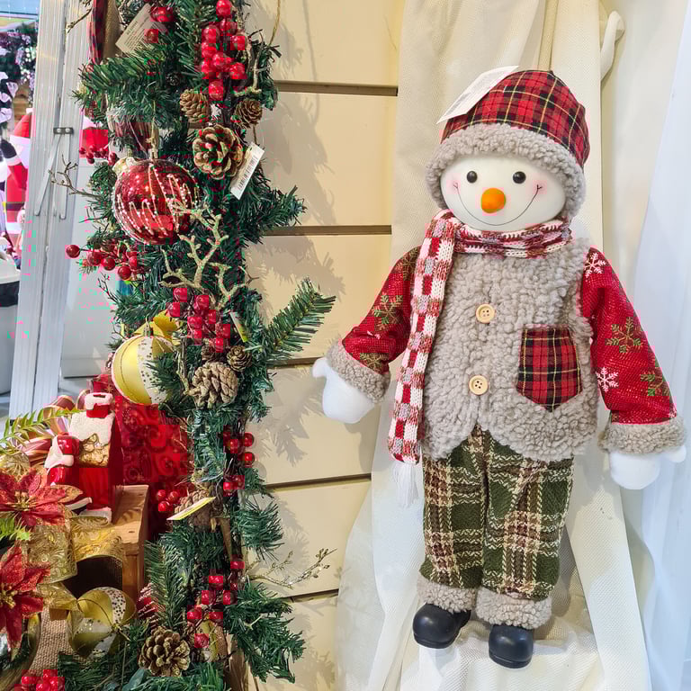 BONECO DE NEVE 48 CM EM PÉ ROUPA TRICÔ