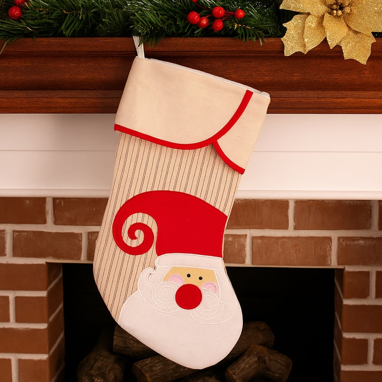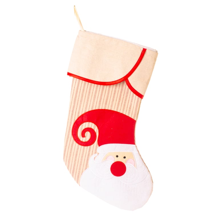 BOTA LINHO 46X27 CM PAPAI NOEL BEGE COM LISTRA VERMELHA