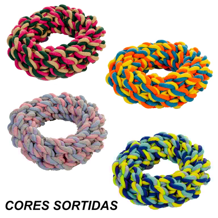 BRINQUEDO MORDEDOR PET 15 CM PNEU CORDA COLORIDO