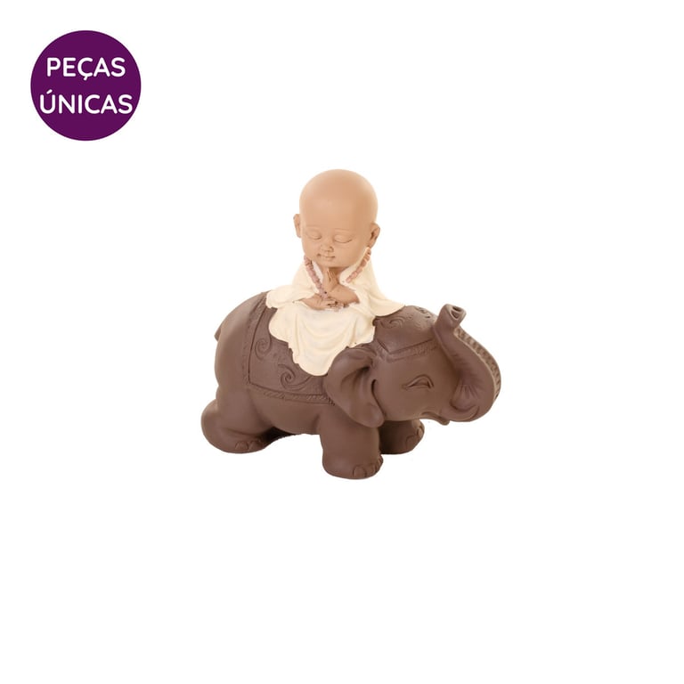 BUDA NO ELEFANTE 12,5X13X6 CM RESINA BEGE