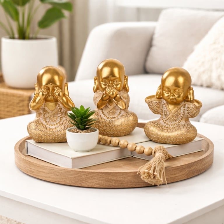 Sugestões de uso OS BUDAS NA DECORAÇÃO SIMBOLIZAM A BUSCA PELA PAZ INTERIOR, SABEDORIA E EVOLUÇÃO ESPIRITUAL. AS ESTATUETAS DE BUDAS TRAZEM LEVEZA E HARMONIA PARA O AMBIENTE. PODENDO SER USADOS SOZINHOS OU EM COMPOSIÇÕES COM OUTROS OBJETOS EM SALAS, QUARTOS, CONSULTÓRIOS, CLÍNICAS, ENTRE OUTROS.