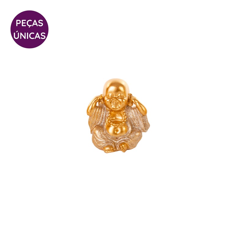 BUDA RESINA 8,9X7X7 CM SÁBIO DOURADO COM GLITTER