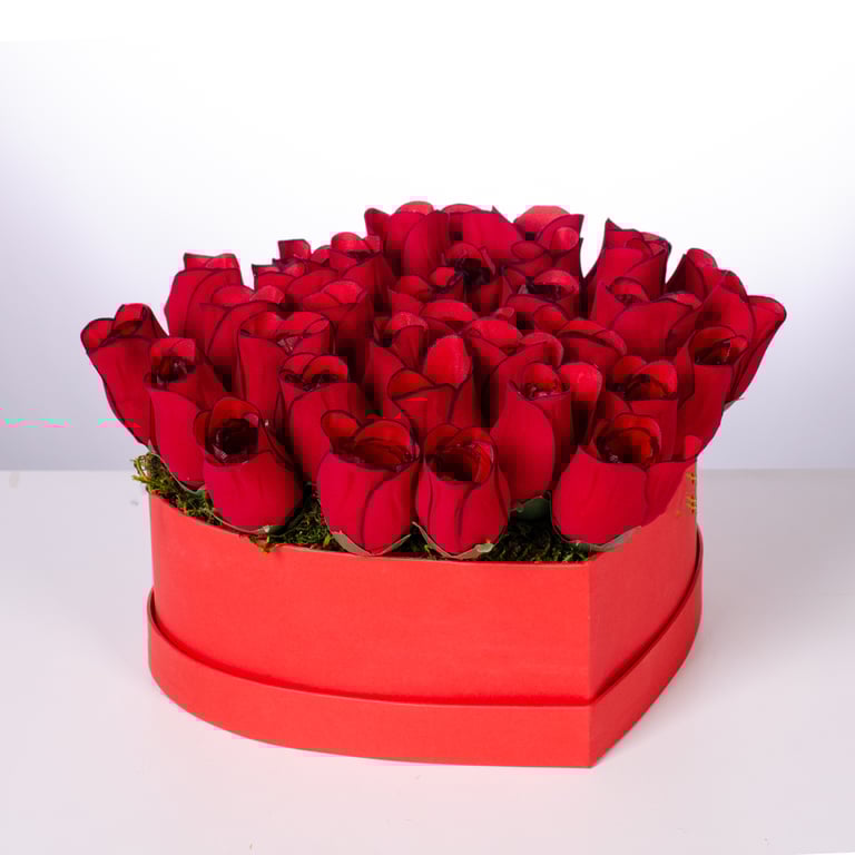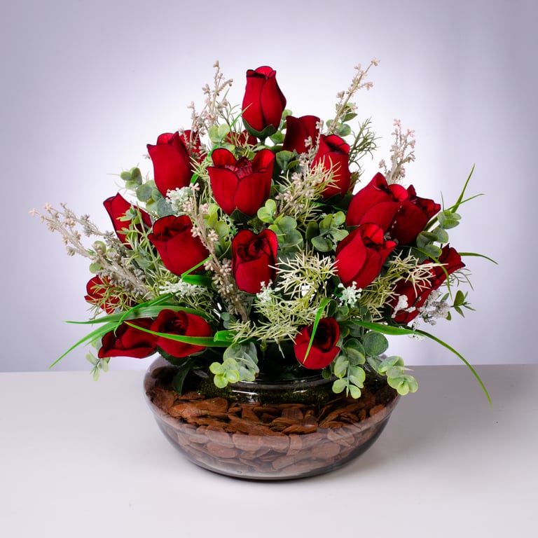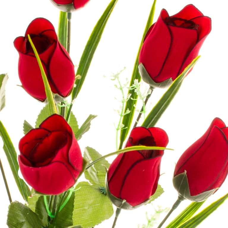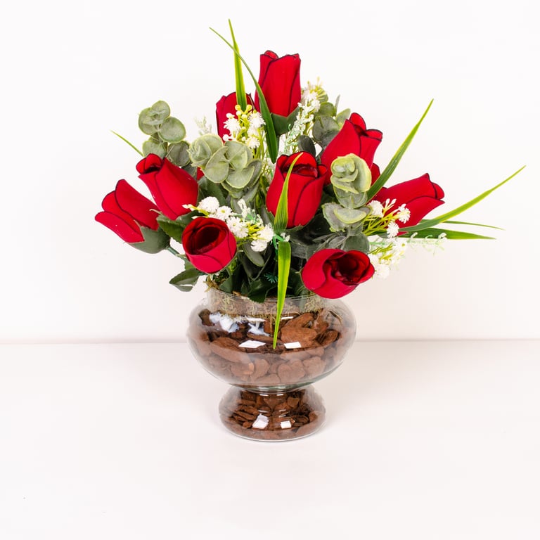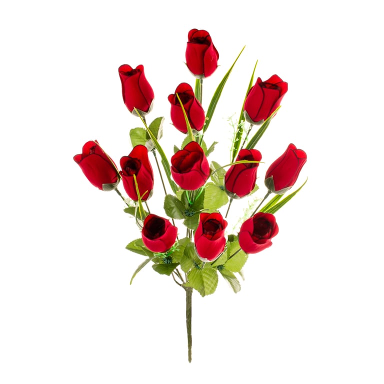 BUQUÊ BOTÃO X12 44 CM VERMELHO VELUDO COM COMPLEMENTO