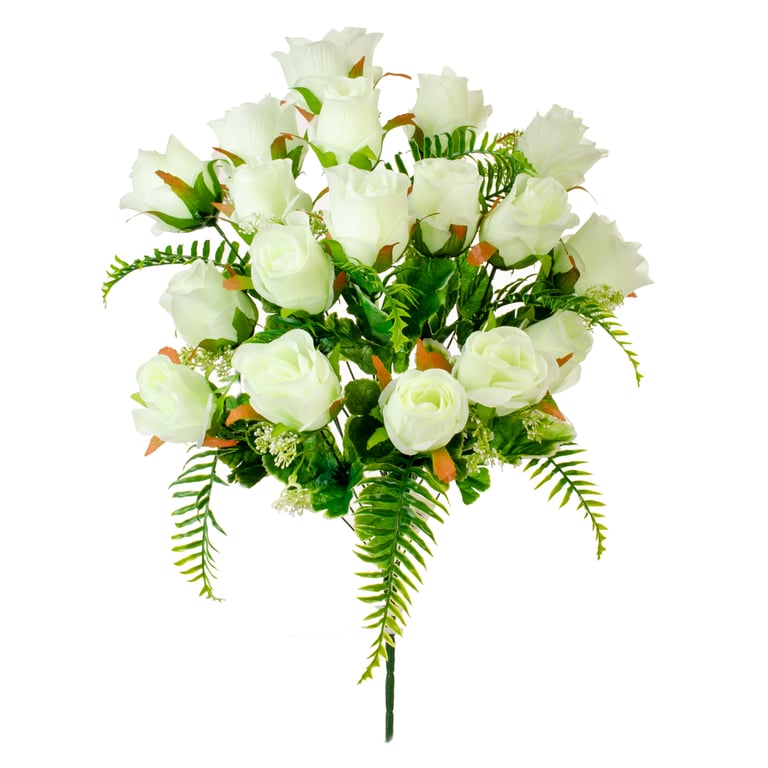 BUQUÊ BOTÃO X18 60 CM COM COMPLEMENTO FOLHAS MESCLADAS