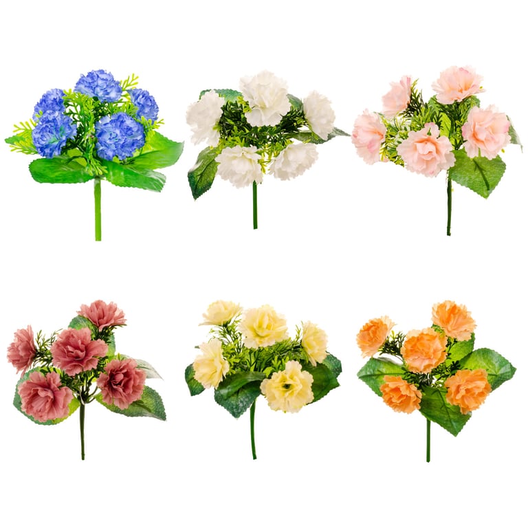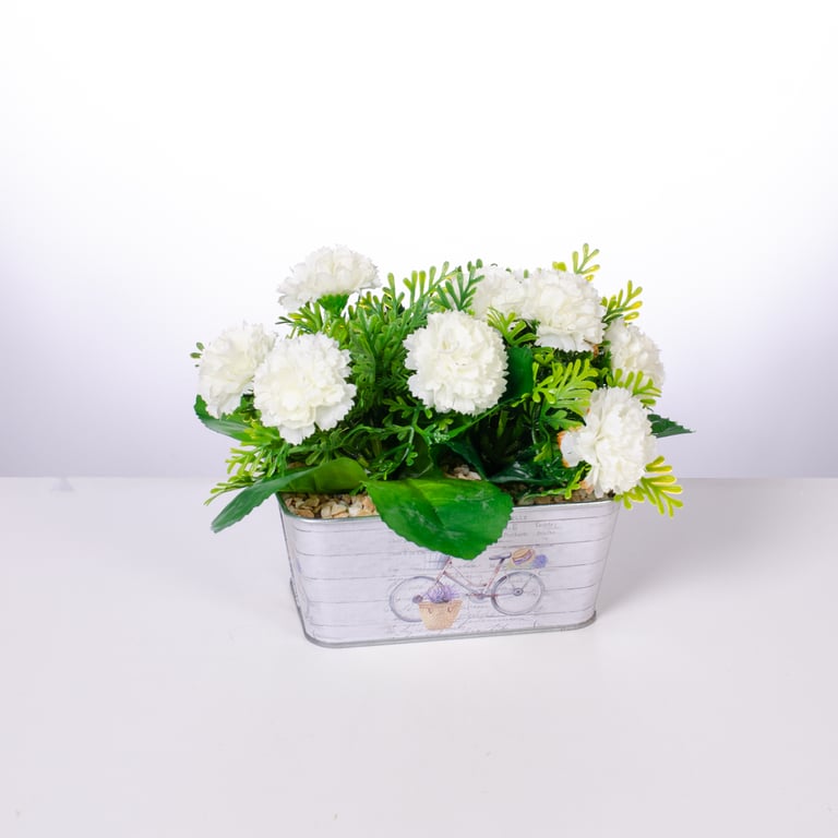 BUQUÊ CRAVO X5 20 CM AVENCA COM FOLHAS LARGAS