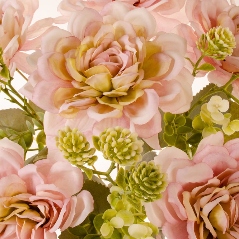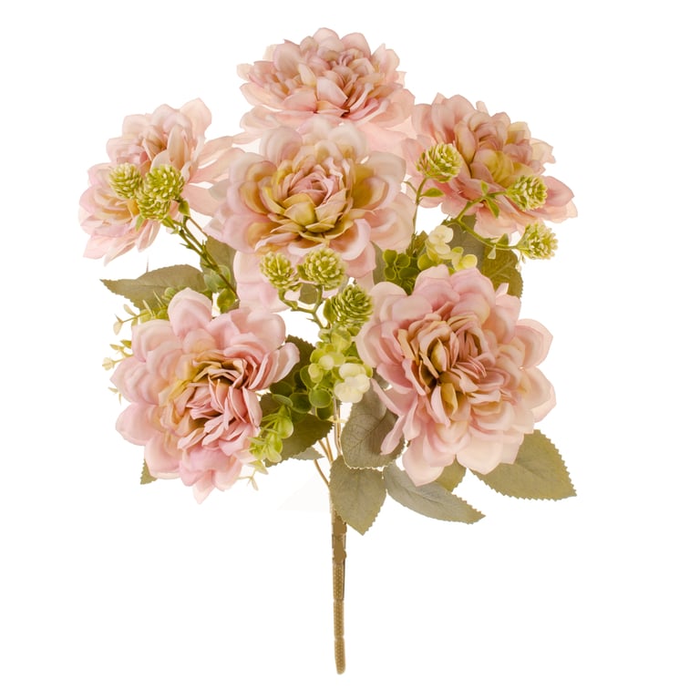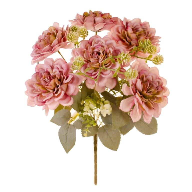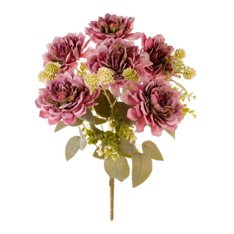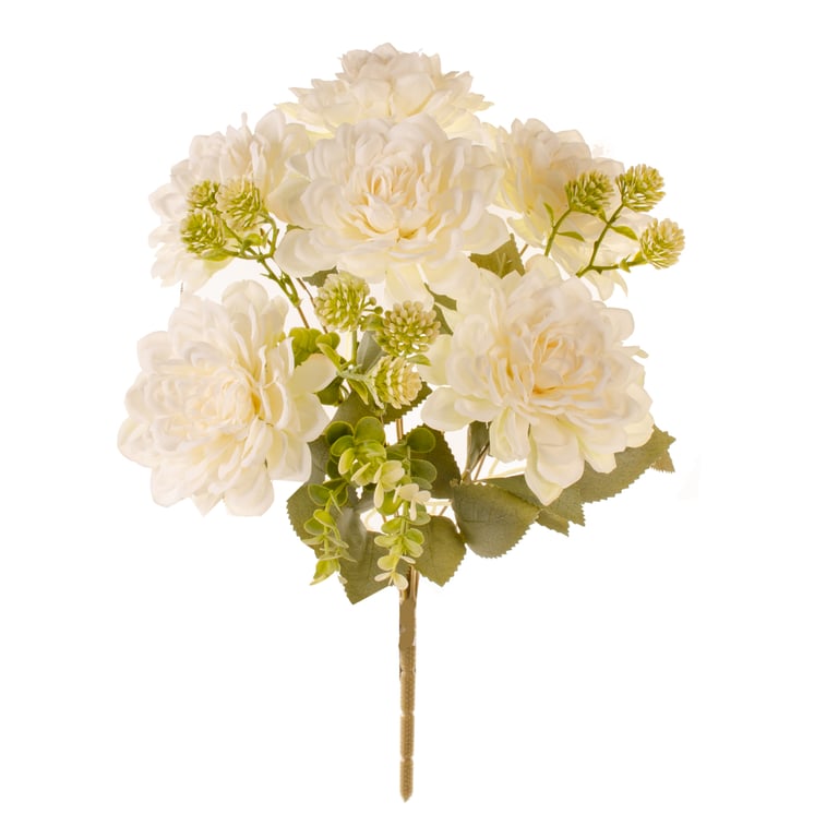 BUQUÊ DÁLIA X9 7 FLORES 40 CM OUTONAL COM EUCALIPTO E SEMENTES FOLHAS CLARAS
