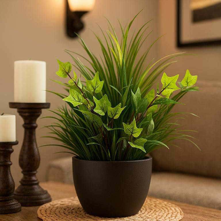BUQUÊ FOLHAGEM X5 32 CM VERDE MESCLADO SILICONADO
