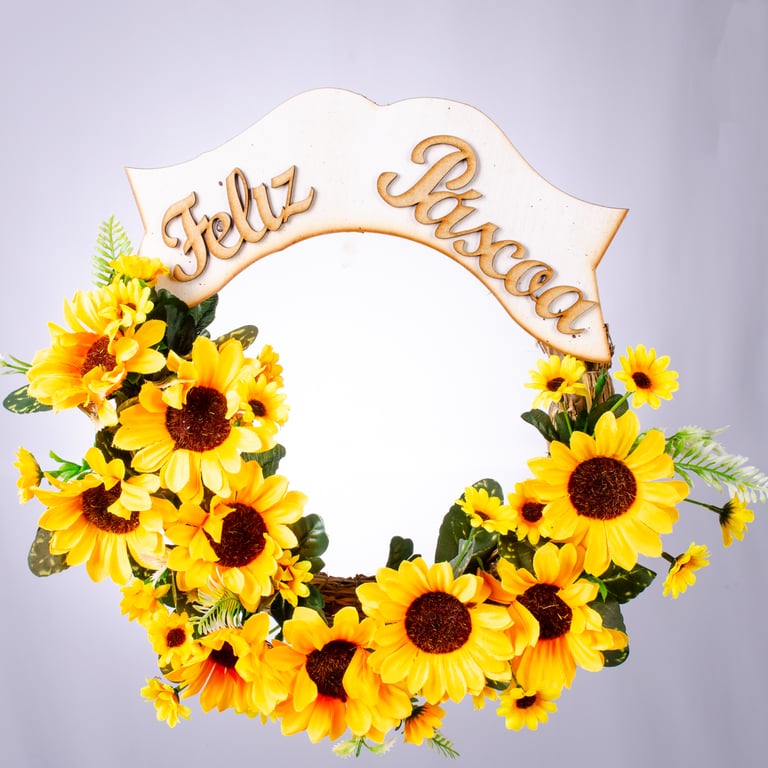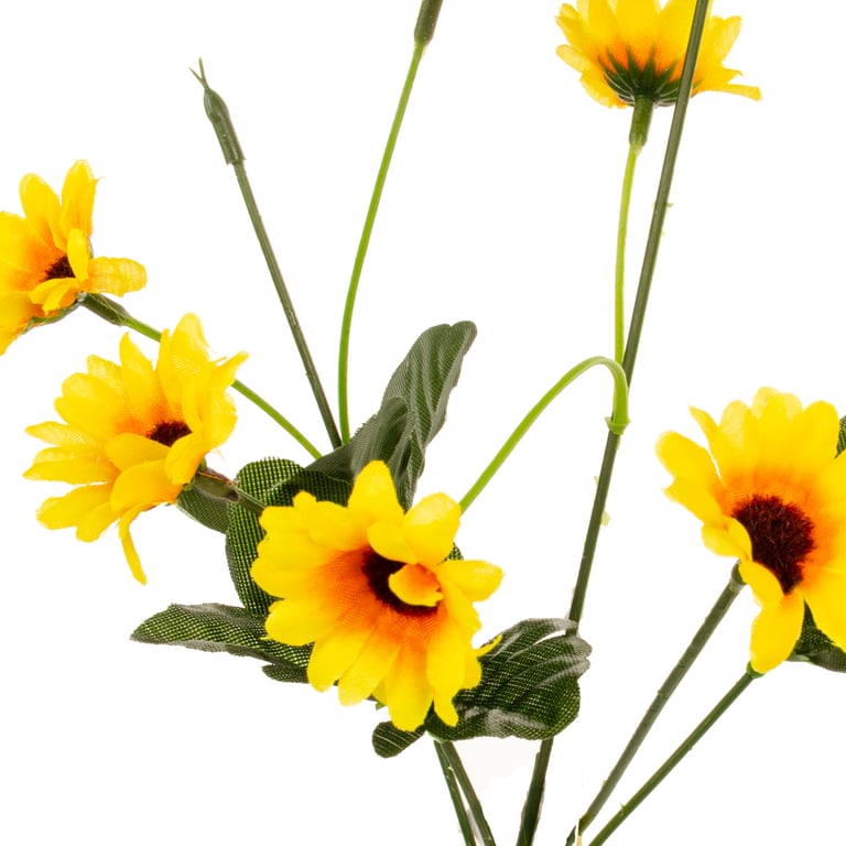 BUQUÊ GIRASSOL X5 8 FLORES 29 CM COM FOLHAS VERDES