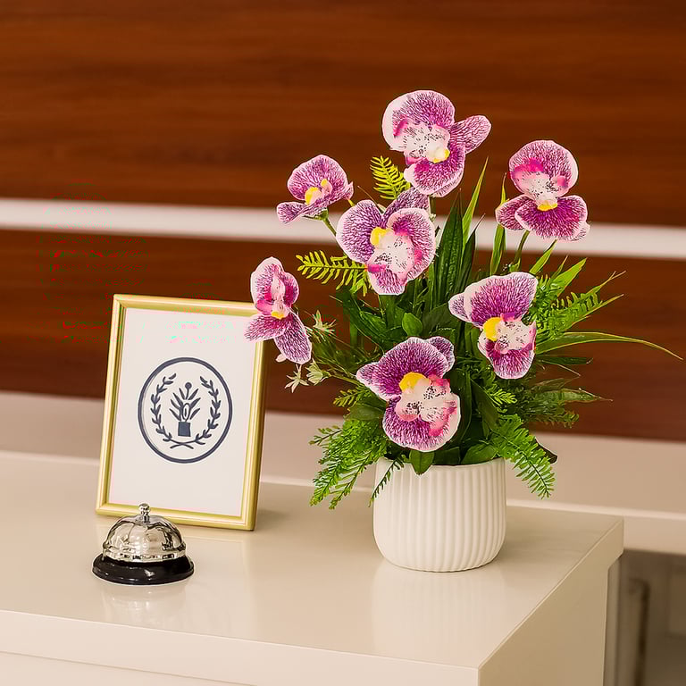 BUQUÊ ORQUÍDEA X7 35 CM COM SAMAMBAIA