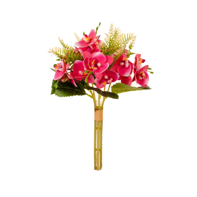 BUQUE RAMALHETE ORQUIDEA X7 7 FLORES 31 CM COM SAMAMBAIA