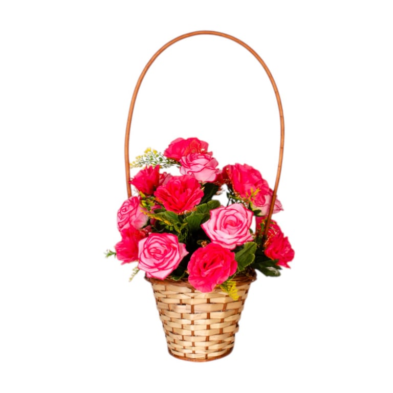 BUQUÊ ROSA X18 60 CM COM SAMAMBAIA