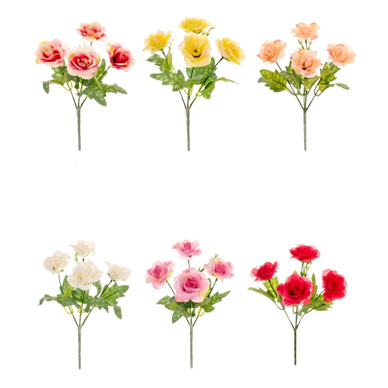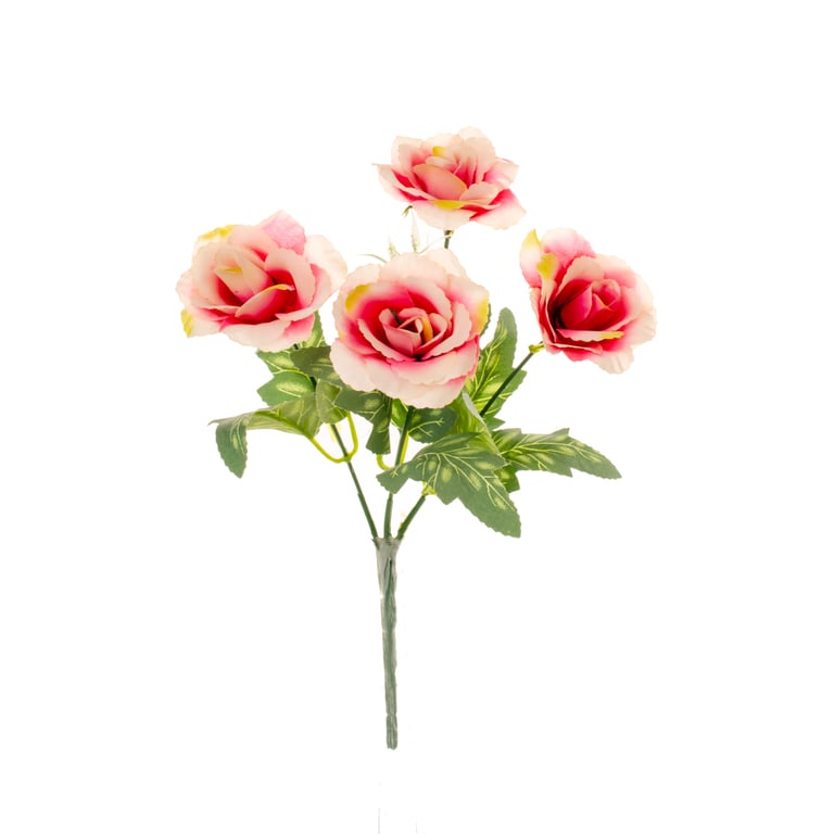 BUQUÊ ROSA X4 28 CM FOLHAS MESCLADAS