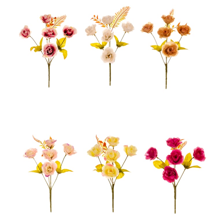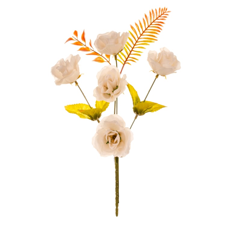 BUQUÊ ROSA X5 28 CM COM SAMAMBAIA
